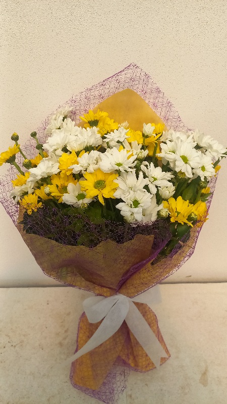 Sarı ve beyaz papatyalardan oluşan buketimiz.