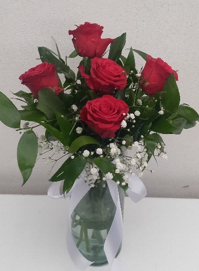 Cam vazoda 5 adet kırmızı gül osmaniye çiçek tasarımıdır.