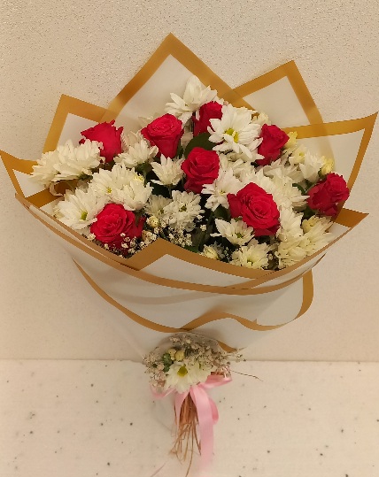8 Adet Kırmızı Gül ve Papatyalar ile tanzim edilmiş osmaniye çiçek çalışması.